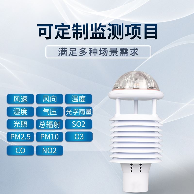 3.風(fēng)速、風(fēng)向、溫度、濕度、氣壓、光學(xué)雨量、pm2.5、pm10、CO、NO2、SO2、O3十二要素一體式傳感器☆